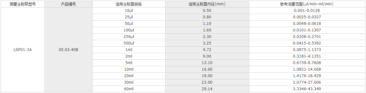 線速度范圍:5μm/min-65mm/min(流量=線速度×注射器內(nèi)截面積)