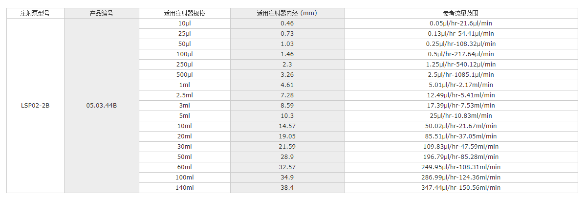 LSP02-1B注射器內(nèi)徑輸入功能:可從列表中選擇注射器或者直接輸入注射器內(nèi)徑