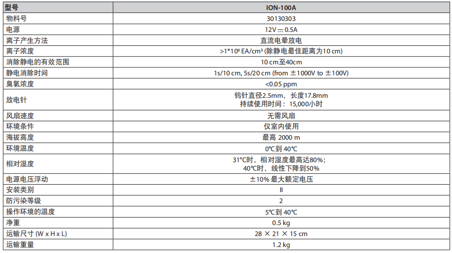 中和靜電且不干擾樣品ION-100A的電極通過無葉風扇直流電暈技術產生雙極性離子,不會干擾微量樣品的稱量。內置或作為備選件Explorer 的自動門型號準微量天平標配內置靜電消除器。其他型號天平可選配此產品。