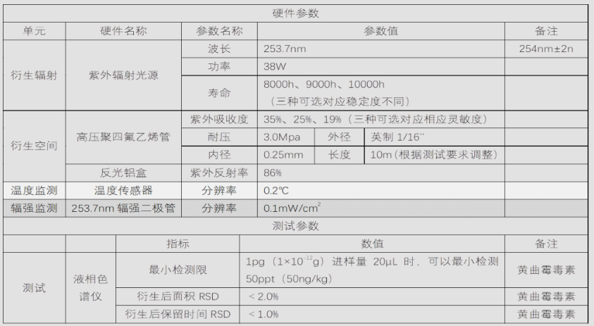 1.準(zhǔn)確測定黃曲霉毒素含量,需將黃曲霉毒素 B1 和 G1 衍生,提高其熒光強(qiáng)度,這種用于液相-熒光法測定黃曲霉毒素時(shí)進(jìn)行柱后光化學(xué)衍生系統(tǒng)。