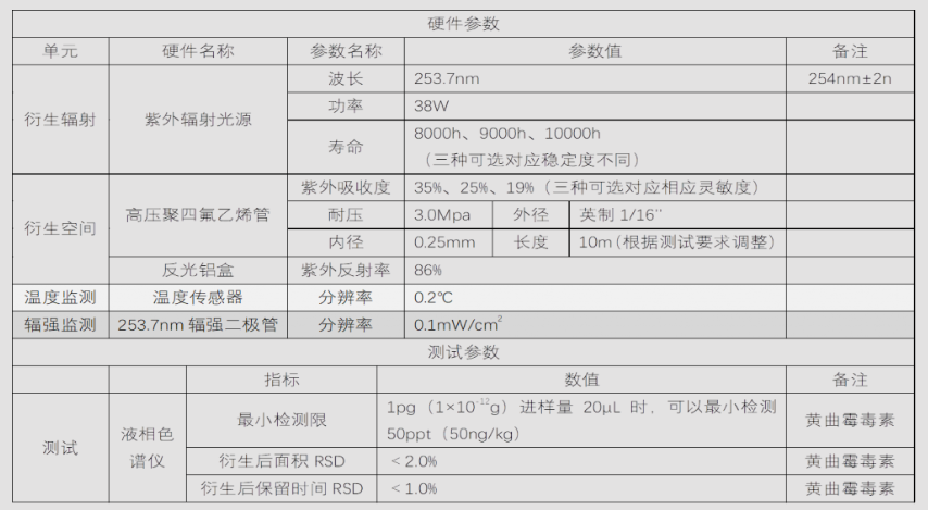 1.準(zhǔn)確測定黃曲霉毒素含量,需將黃曲霉毒素 B1 和 G1 衍生,提高其熒光強(qiáng)度,這種用于液相-熒光法測定黃曲霉毒素時(shí)進(jìn)行柱后光化學(xué)衍生系統(tǒng)。
